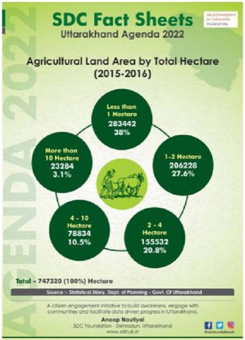 हम आज दो पोस्टरों के एक सेट के माध्यम से एसडीसी फैक्ट शीट्स . उत्तराखंड एजेंडा 2022 का दूसरा सेट प्रस्तुत कर रहे हैं और प्रदेश में कृषि भूमि के असाधारण छोटे आकार को हाईलाइट कर रहे हैं ।
