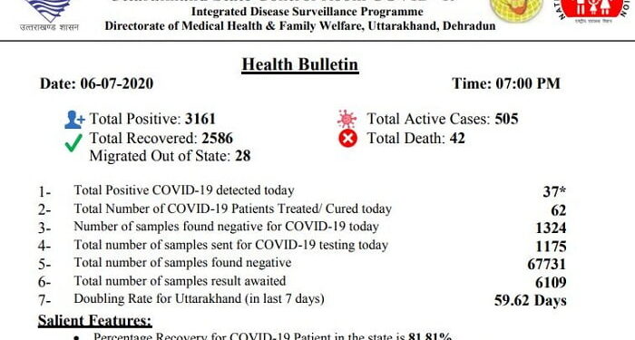 राज्य में अब 505 एक्टिव मामले हैं, जिनकी संख्या कम होती जा रही है। खास बात यह रही कि राज्य में आज विभिन्न अस्पतालों से 62 लोग ठीक होकर घरों को गए। कई दिनों से संक्रमण से मरने वालों की संख्या 42 पर अटकी हुई है, यह भी राज्य के लिए एक अच्छा संकेत है।