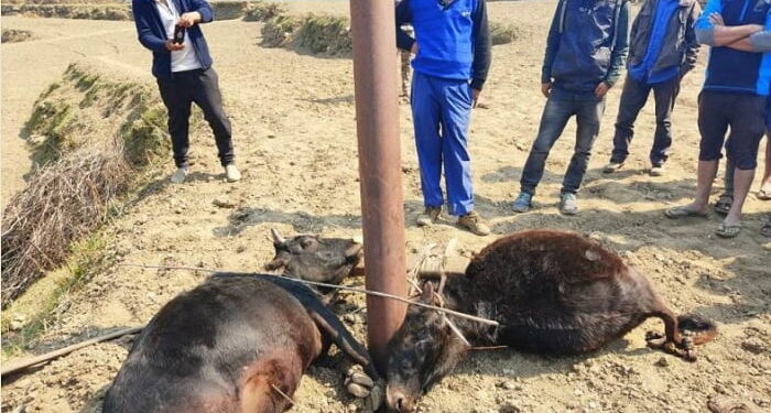 फोटो– करन्ट लगने दो बैलों की दर्दनाक मौत ।