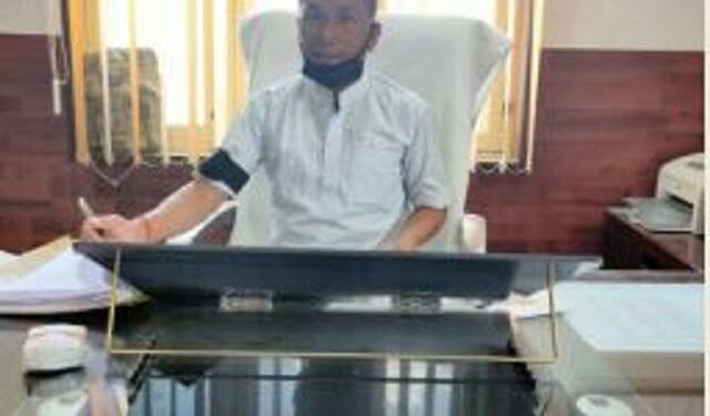 फोटो–काली पटटी बाध कर कटौती का विरोध दर्ज करते ब्लाक प्रमुख परमार।