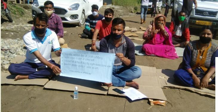फोटो- उर्गम मे प्रधान संगठन के अध्यक्ष अनूप नेगी के नेतृत्व में विरोध दर्ज करते घाटी के जनप्रनिधि ।