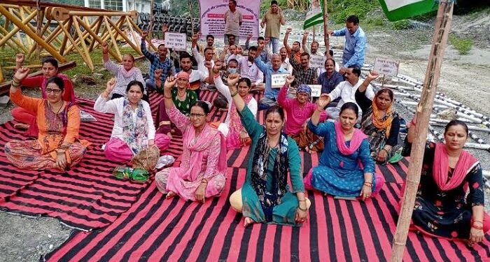 लोहारी। लगातार 95वें दिन भी ब्यासी बांध से पूर्ण रुप से प्रभावित एकमात्र जनजातीय राजस्व गांव लोहारी के काश्तकारों का धरना प्रदर्शन जारी रहा।