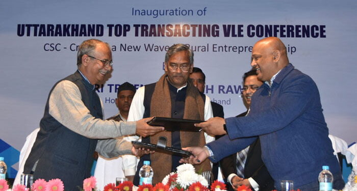 उत्तराखंड सरकार द्वारा बिजनेस मॉडल पर आधारित कॉमन सर्विस सेंटर (सीएससी) के द्वारा रिवर्स माइग्रेशन को प्रोत्साहित किया जा रहा है। मुख्यमंत्री श्री त्रिवेंद्र ने घोषणा की कि हरिद्वार देश का पहला जिला है जिसकी सभी पंचायतें वाई-फाई हैं। मुख्यमंत्री श्री त्रिवेंद्र सिंह रावत ने बुधवार को आईआरडीटी सभागार में उत्तराखंड टॉप ट्रांजैक्टिंग वीएलई कांफ्रेंस के दौरान प्रदेश भर से आए सीएससी ग्रामीण स्तरीय उद्यमियों का उत्साहवद्धर्न किया। मुख्यमंत्री श्री त्रिवेंद्र ने कहा कि वर्तमान में उत्तराखंड में 5000 से अधिक कॉमन सर्विस सेंटर सक्रिय है। राज्य में 9622 कॉमन सर्विस सेंटर पंजीकृत है जिसमें से 7619 ग्रामीण क्षेत्र में है तथा दो हजार के लगभग शहरी क्षेत्र में है। आज राज्य में 233044 लाभार्थी पंजीकृत किए जा चुके हैं जिनमें से 100412 लाभार्थी प्रमाणीकृत है। मुख्यमंत्री ने कहा कि यह खुशी की बात है कि उत्तराखंड की विषम भौगोलिक परिस्थितियों में आईटी के माध्यम से विषमताओं को दूर करने का काम किया जा रहा है।