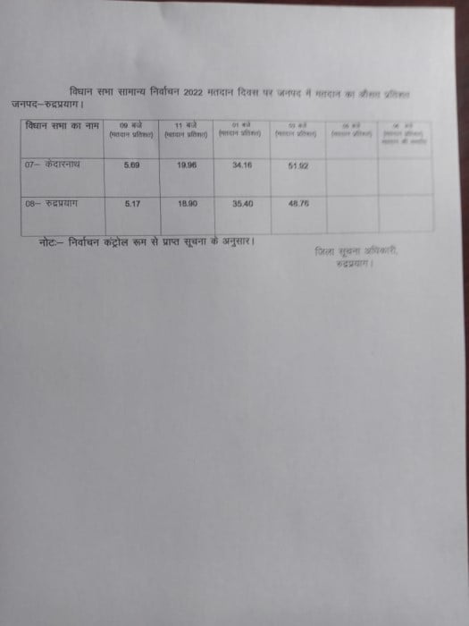 रुद्रप्रयाग जिलाधिकारी मनुज गोयल ने प्राथमिक विद्यालय खुरड रुद्रप्रयाग के मतदान केंद्र में अपना मताधिकार का प्रयोग किया व जनपदवासियों से अनिवार्य रूप से अपने मताधिकार का प्रयोग करने की अपील की।