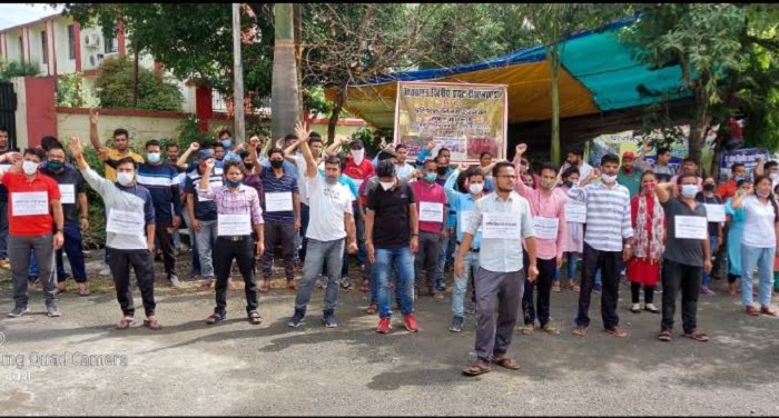 देहरादून। पिछले 26 दिनों से लगातार अपनी मांगों को लेकर शिक्षा निदेशालय में आंदोलनरत डायट डीएलएड प्रशिक्षित आज भी धरने पर डटे रहे। इस अवसर पर प्रशिक्षितों ने सर्वप्रथम निदेशालय परिसर में नारे बाज़ी के साथ अपनी मांगों को अधिकारियों तक पहुंचाया।