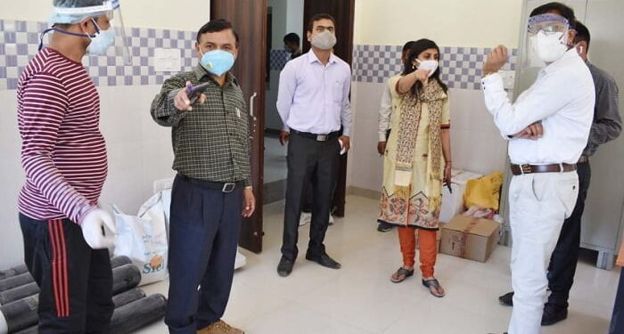 फोटो.जनपद के कोविड केयर सेंटरों का निरीक्षण करते जिले के आलाधिकारी।