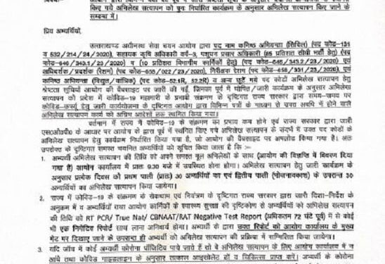 आयोग के कार्यालय में प्रवेश के लिए कोरोना निगेटिव रिपोर्ट प्रस्तुत करनी होगी, जो 72 घंटे पूर्व से अधिक पुरानी न हो।