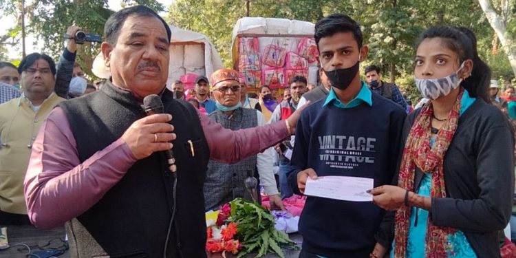 कोटद्वार। श्रम विभाग की ओर से आयोजित कार्यक्रम में 167 लाभार्थियों को सहायता राशि के चैक वितरित किए गए। अपने सरकारी आवास पर आयोजित कार्यक्रम में वन मंत्री डॉ हरक सिंह रावत ने 35 महिलाओं को प्रसूति चैक, 106 श्रमिकों को कन्या विवाह के लिए चैक, 27 श्रमिक आश्रितों को श्रमिक की मौत होने पर चैक, कुल 96 लाख 62 हजार की धनराशि के चैक वितरित किए।