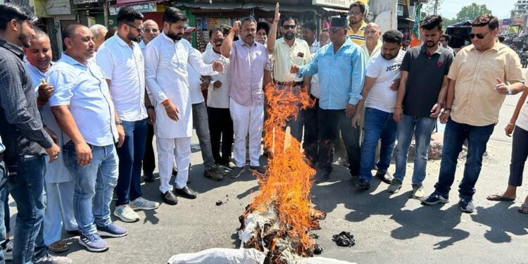 डोईवाला, (प्रियांशु सक्सेना)। कांग्रेस ने फूंका पूर्व मुख्यमंत्री त्रिवेंद्र सिंह रावत का पुतला। कहा भाजपा का असली चेहरा फिर बेनकाब। शनिवार को नगर चौक पर विरोध प्रदर्शन करते हुए जलाया पूर्व सीएम का पुतला।