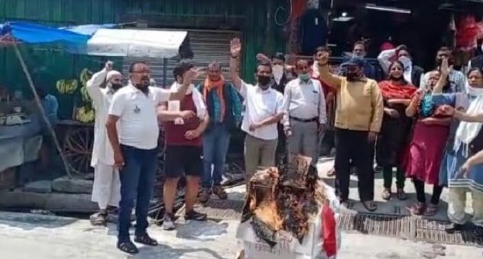 फोटो- चीनी सरकार का पुतला दहन करते सीमांत कांग्रेस कार्यकर्ता।