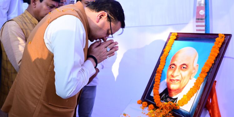 डिग्री कॉलेज में आयोजित कार्यक्रम में मुख्यमंत्री श्री धामी ने सरदार पटेल की प्रतिमा पर पुष्प अर्पित कर श्रद्धांजलि दी और उपस्थित जनसमूह को संबोधित करते हुए कहा कि “सरदार वल्लभभाई पटेल भारत की एकता, अखंडता और दृढ़ संकल्प के प्रतीक हैं। स्वतंत्रता संग्राम में उनका योगदान और देश की रियासतों के एकीकरण में उनकी भूमिका सदैव स्मरणीय रहेगी, जो नवजवानों को सदैव प्रेरित करती रहेगी।”