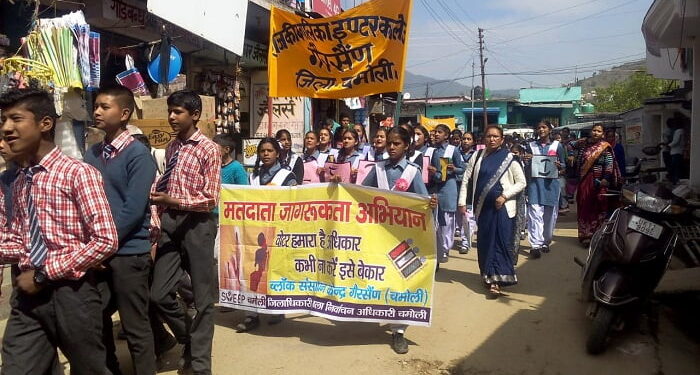 आई सी, विद्या मंदिर, जे एन एस एन एस हाई स्कूल, राजकीय प्राथमिक विद्यालय गैरसैंण जी आई सी गैरसैंण की राष्ट्रीय सेवा योजना ईकाई ने नगर के मुख्य बाजार की परिक्रमा कर मतदाता जागरूकता रैली निकाली।