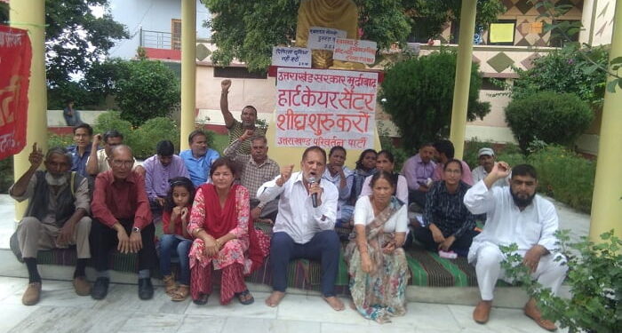 अल्मोड़ा। उत्तराखंड परिवर्तन पार्टी ने स्वास्थ्य सेवाओं की बदहाली एवं क्षेत्र के एकमात्र हार्टकेयर सेंटर के बंद करने के खिलाफ गांधीपार्क में धरनाकृप्रदर्शन किया। साथ ही विरोध में जमकर सरकार के खिलाफ नारेबाजी की। धरना स्थल पर हुई सभा को संबोधित करते हुए उपपा के केंद्रीय अध्यक्ष पीसी तिवारी ने कहा कि प्रदेश सरकार व जनप्रतिनिधियों की नाकामी के कारण पर्वतीय क्षेत्रों के स्वास्थ्य सेवायें ध्वस्त हो गई है।