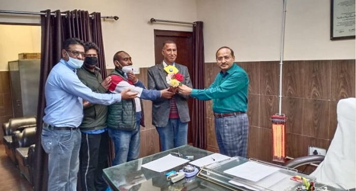 फोटो–डिप्टी रैंजर पद से सेवानिवृत हुए श्री साह को विदाई देते डीएफओ किसन चंद्र ।