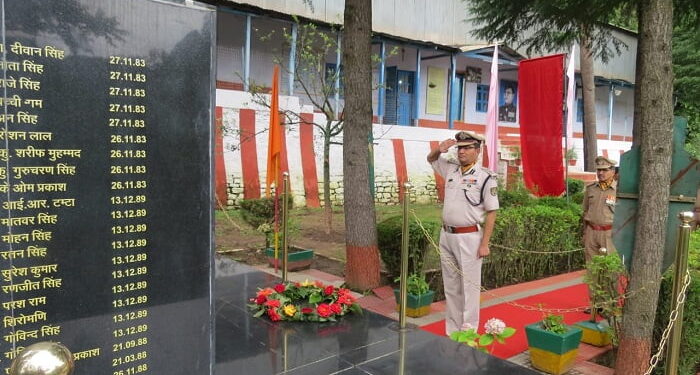 01-आईटीबीपी प्रथम वाहिनी के शहीद स्मारक पर पुष्प चक्र अर्पित करते हुए वाहिनी के सेनानी विक्रांत थपलियाल,