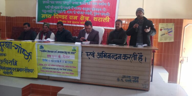 ब्लाक सभागार थराली में सीपी भट्ट पर्यावरण विकास संस्थान गोपेश्वर एवं जागो हिमालयन लोक कल्याण समिति थराली के द्वारा दवानल से जंगलों को बचाने के तहत रविवार से सूना गांव से शुरू हुई पदयात्रा के दूसरे दिन आयोजित पर्यावरण गोष्ठी में सभागार मे बद्रीनाथ वन प्रभाग के प्रभागीय वनाधिकारी सर्वेश कुमार दुबे ने दीप प्रज्वलित कर गोष्ठी का उद्घाटन करते हुए कहा कि वास्तव में जंगलों में गर्मियों के दौरान लगने वाली आग एक बढ़ी समस्या हैं। दवानल से जंगलों को बचाने के लिए आम ग्रामीणों को जागरूक करने के साथ ही वन विभाग के अधिकारियों एवं कर्मचारियों को वन पंचायतों के सरपंचों, ग्रामीणों के साथ सामंजस्य बिठाने की अपील करते हुए कहा कि एक जुटता के साथ ही इस समस्या से निपटा जा सकता हैं। इस अवसर पर पूर्व रेंजर एवं वन पंचायत सरपंच संगठन के अध्यक्ष गोविन्द सिंह सोनी ने कहा सरपंचो को आर्थिक सहयोग के बिना सरपंच मजबूत नही होंगे तों ऐसी स्थिति में पर्यावरण संरक्षण को बल नही मिलेगा। इस अवसर पर समाजसेवी मंगला कोठीयाल ने कहा जंगलो मे आग के कारण गर्मी बढ़ जाती है। जिससे तेजी के साथ ग्लेशीयर पिघल के कारण अन्य कई तरह की समस्याएं उत्पन्न हों रही हैं।इस अवसर पर मध्य पिंडर रेंज थराली के वन क्षेत्राधिकारी हरीश थपलियाल, सीपी भट्ट पर्यावरण,विकास संस्थान गोपेश्वर के ट्रस्टी ओम प्रकाश भट्ट, पूर्व अध्यापक बचन सिंह रावत ,जागो हिमालय के निर्देशक रमेश थपलियाल, पर्व क्षेपंस सुभाष पिमोली, वन दरोगा कुंदन बोरा, दिपक मेहरा,सरपंच संगठन थराली के अध्यक्ष वीरेंद्र रावत, सरपंच संगठन नारायणबगड के अध्यक्ष भगवती प्रसाद,अब्बल सिंह रावत, सरपंच महिपाल सिंह रावत , प्रेम सिंह, संजू देवी, जानकी देवी, मोहन सिंह, महाबीर चिनवान, लक्ष्मी जोशी, कलम सिंह फर्शवाण, अब्बल सिंह रावत आदि ने विचार व्यक्त किए संचालन विनय सेमवाल ने किया।