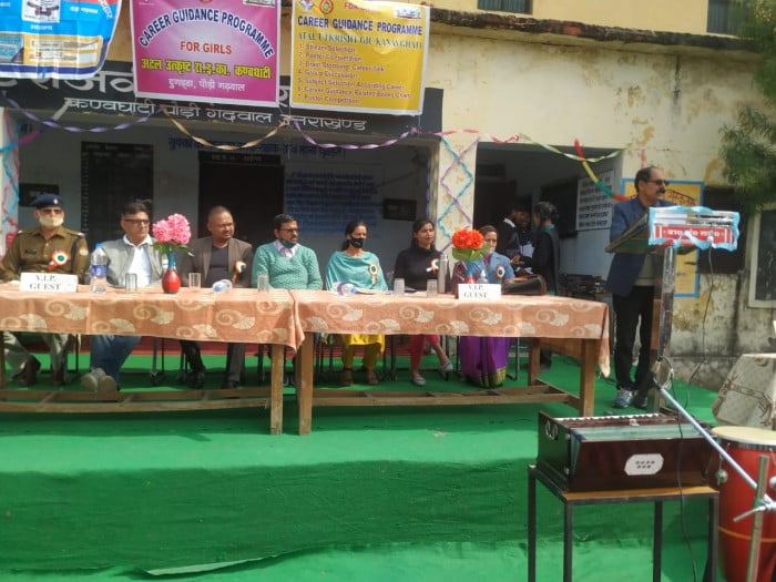 कोटद्वार। पौड़ी जनपद के दुगड्डा ब्लॉक के अन्तर्गत अटल उत्कृष्ट राजकीय इंटर कॉलेज कण्वघाटी में बालिका कैरियर गाइडेंस प्रोग्राम का आयोजन किया गया। विद्यालय के प्रधानाचार्य आर के कुकरेती के निर्देशन में विभिन्न कॉलेजों क्यूट और विभागों से आमंत्रित गणमान्य अतिथियों ने बालिकाओं का कैरियर मार्गदर्शन किया।