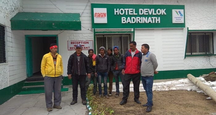 फोटो- बदरीनाथ पंहुची जीएमवीएन की टीम ।