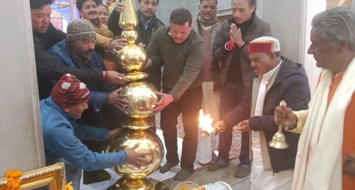 01-भगवान नृसिंह मंदिर के लिए समर्पित भब्य कलश का पूजन करते हुए बीकेटीसी के अध्यक्ष मोहन प्रसाद थपलियाल व सीईओ बीडी सिंह ।