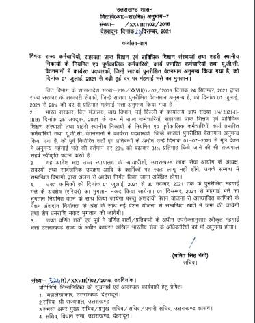 सचिव वित्त अमित सिंह नेगी ने तीनों वेतनमानों से संबंधित कार्मिकों को मिलने वाले डीए की दरों के बोर में पत्रों विस्तृत विवरण दिया है। इन सिफारिशों में राज्य सरकार, निकायों, स्वायत्त संस्थाओं तथा सहायता प्राप्त संस्थानों के सभी कार्मिक कवर हो जाएंगे। राज्य सरकार के इस आदेश से राज्य पर एक बड़ा वित्तीय भार आएगा। लेकिन इस आदेश को 2022 में होने वाले चुनावों के मद्देनजर देखा जा रहा है।
