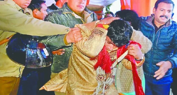 पीएसी कर्मी की शादी की भनक लगते ही मंडप में एकाएक प्रेमिका आ पहुंची और हंगामा करने लगी। गुस्साई प्रेमिका ने सजे मंडप को को पैर मारकर तोडफोड़ की। रणचंडी बनी प्रेमिका के हंगामे से शादी समारोह में अफरातफरी मच गई। पुलिस के सामने ही घरातियों ने दूल्हे को जमकर पीट डाला। इसके बाद शादी की रस्मों को रोकना पड़ा। लड़की पक्ष ने अब शादी से इन्कार करते हुए लड़के पक्ष से हर्जाना मांगा है। साथ ही पुलिस से दूल्हे के खिलाफ 420 का मुकदमा दर्ज करने को कहा है। लड़के की मां ने लड़की पक्ष की बात पर हामी भरी है। वहीं, मंडप में लात मारने पर दुल्हन बनी लड़की भी आपे से बाहर हो गई और उसने प्रेमिका की धुनाई कर दी। इसके बाद बमुश्किल लोगों ने उसे शांत किया।