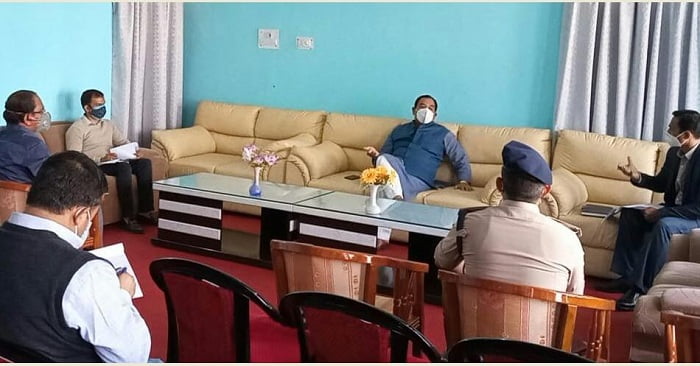 उन्होंने संबंधित अधिकारियों को आवश्यक दिशा निर्देश देते हुए कहा कि इस महामारी से बचाव हेतु सभी को सक्रियता के साथ मिलकर कार्य करने की जरूरत है, इसमें जनमानस की सहयोग महत्वपूर्ण है। उन्होंने कोरोना के बढ़ते हुए मामलों को देखते हुए प्रदेश वासियों से शादियों को वर्तमान में टालने की अपील की। कहा कि इस समय शादियां टालने से पूरे प्रदेशवासियों पर उपकार होगा। साथ ही प्रदेशवासियों को कोविड 19 के गाइड लाइन का पालन अनिवार्य रूप से करने को। वहीं जिलाधिकारी को जनपद में मौजूद एम्बुलेंस को अपने अपने क्षेत्रों में आवश्यक औषधि के साथ संबंधित डाॅक्टर की तैनाती कर मूवमेंट में रखने के निर्देश दिये। ताकि जनमानस को छोटी.छोटी बीमारी का स्थानीय स्तर पर ही दवा मिल सकें। मुख्य चिकित्साधिकारी को निर्देशित करते हुए कहा कि अस्पताल में तैनात डाॅक्टरों को रोगियों के उपचार के दौरान सक्रियता से कार्य करने हेतु निर्देशित करें। कहा कि किसी भी प्रकार की लापरवाही न बरती जाय।