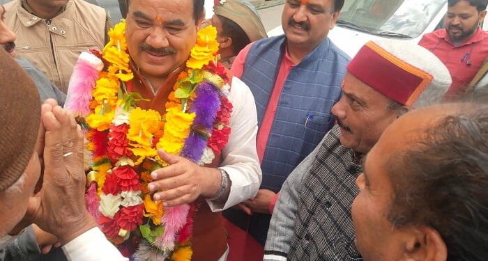 फोटो- जोशीमठ पंहुचेने पर वन मंत्री डा0 रावत का स्वागत करते भाजपा कार्यकर्ता।
