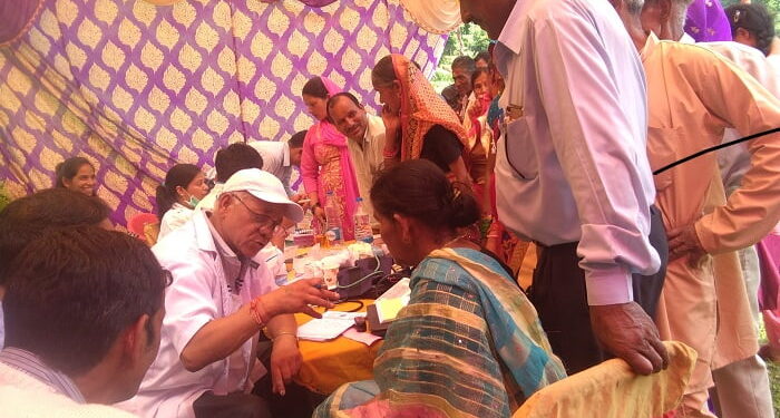फोटो-किमोली में निशुल्क स्वास्थ्य शिविर में परीक्षण कराते ग्रामीण ।
