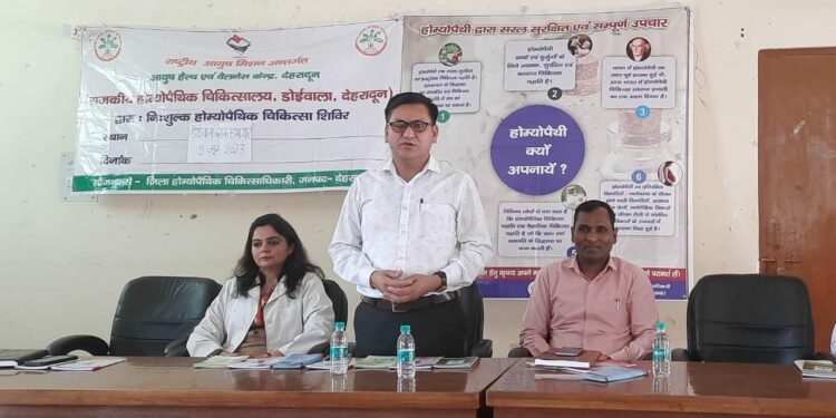 डोईवाला, (प्रियांशु सक्सेना)। राजकीय होम्योपैथिक चिकित्सालय की ओर से नि:शुल्क चिकित्सा शिविर का आयोजन किया गया। शुक्रवार को डोईवाला ब्लॉक सभागार में नि:शुल्क चिकित्सा शिविर आयोजित किया, जिसका कई लोगो ने लाभ उठाया। होम्योपैथिक चिकित्सा प्रभारी डॉ प्रियंका भारद्वाज ने बताया की व्यस्त दिनचर्या के कारण लोग अपने स्वास्थ्य की ओर ध्यान नहीं दे रहे हैं जो कि सेहत के लिए हानिकारक है। बताया की अच्छे खान पान, व्यायाम से हम कई बीमारियों को दूर कर सकते हैं। शिविर में उप जिलाधिकारी शैलेंद्र नेगी, बीडीओ जगत सिंह आदि ने स्वास्थ्य संबंधित महत्वपूर्ण जानकारी दी। इस दौरान डोईवाला तहसीलदार मोहम्मद शादाब, बार एसोसिएशन अध्यक्ष फूल सिंह, व्यापार मंडल अध्यक्ष रमेश वासन, दरपान बोरा, साकिर आदि थे।