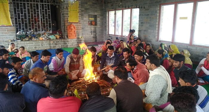 फोटो–संजीवनी शिखर औली मे अंखड रामायण पाठ की समाप्ति पर हवन करते हएु श्रद्धालु ।