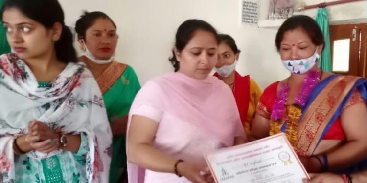कमल बिष्ट। रिखणीखाल। अखिल भारतीय महिला कांग्रेस की राष्ट्रीय सचिव ज्योति रौतेला द्वारा लैंसडाउन विधानसभा के विकासखंड रिखणीखाल की आशा एवं आंगनबाड़ी कार्यकर्तियों को कोरोना योद्धा सम्मान समारोह में सम्मानित किया गया। समारोह में ज्योति रौतेला द्वारा आशा एवं आंगनबाड़ी कार्यकत्रियों को सर्टिफिकेट एवं शॉल भेंट कर सम्मानित किया।