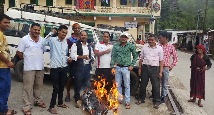 गैरसैंण। रविवार को माईथान में स्थानीय व्यापारियों और सामाजिक कार्यकर्ताओं द्वारा प्रदेश सरकार का पुतला दहन किया गया।