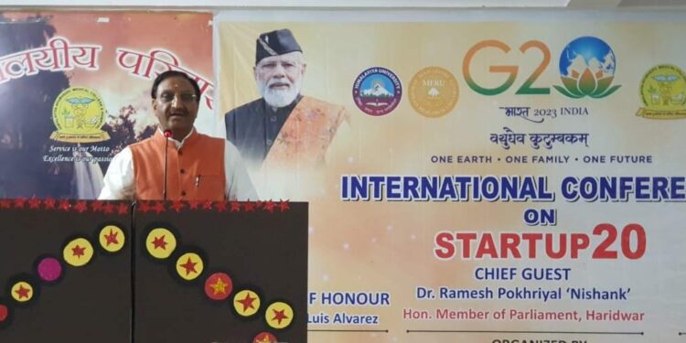 डोईवाला, (प्रियांशु सक्सेना)। हिमालयीय विश्वविद्यालय द्वारा जी–20 में स्टार्टअप पर आयोजित अंतर्राष्ट्रीय संगोष्ठी आयोजित की गई। जिसमें मुख्य अतिथि पूर्व शिक्षा मंत्री एवं वर्तमान हरिद्वार सांसद डॉ रमेश पोखरियाल निशंक रहे।