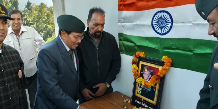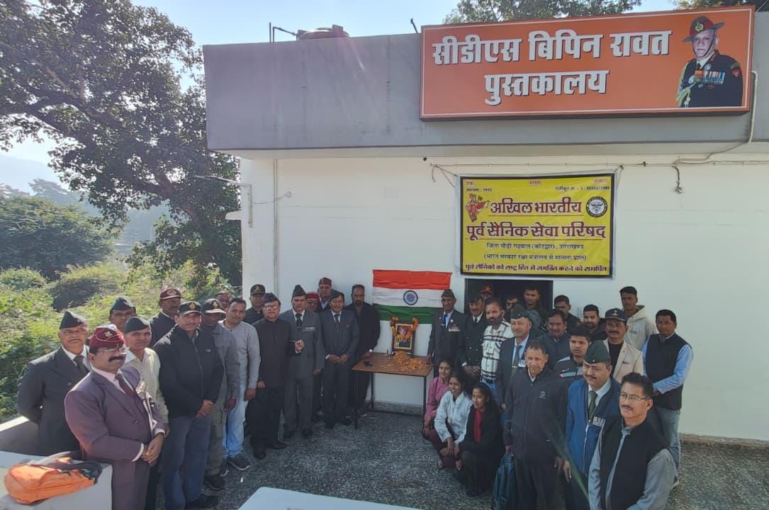 कोटद्वार। भारत के प्रथम चीफ ऑफ डिफेंस स्टाफ (सीडीएस) अदम्य साहस के प्रतीक जनरल बिपिन रावत की पुण्यतिथि के अवसर पर अखिल भारतीय पूर्व सैनिक सेवा परिषद जिला पौड़ी गढ़वाल द्वारा विधायक कोटद्वार एवं विधानसभा अध्यक्ष ऋतु खण्डूड़ी भूषण द्वारा संचालित सीडीएस बिपिन रावत पुस्तकालय में सीडीएस बिपिन रावत की प्रतिमा के समक्ष पूर्व सैनिकों द्वारा श्रद्धांजलि अर्पित करी गई।