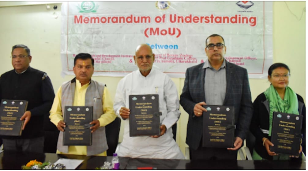 जड़ी-बूटी शोध एवं विकास संस्थान के मंडल स्थित मुख्यालय पर आयोजित कार्यक्रम में संस्थान के निदेशक और मुख्य विकास अधिकारी चमोली डा. अभिषेक त्रिपाठी ने एमओयू पर हस्ताक्षर किए। उन्होंने बताया कि नई शिक्षा प्रणाली में छात्रों के क्षमता विकास के लिए कार्यक्रमों का संचालन करने का प्रवधान किया गया है। जिसके तहत संस्थान की ओर से युवाओं को जड़ी-बूटी कृषिकरण और शोध कार्यों हेतु प्रशिक्षण प्रदान कर व्यवसायिक तौर पर युवाओं का क्षमता विकास किया जाएगा। कहा एमओयू के तहत राजकीय महाविद्यालय में वनस्पति विज्ञान, जन्तु विज्ञान और रसायन विज्ञान के छात्रों प्रशिक्षण के साथ ही शोध कार्य में सहयोग किया जाएगा। इसके साथ ही जिला प्रशासन के अन्य विभागों को एमओयू से जोड़ा गया है। उन्होंने कहा कि इस पहल का मुख्य उद्देश्य युवाओं की क्षमता विकास के साथ स्वरोजगार सृजन करना है। बताया कि संस्थान से प्रशिक्षण लेने वाले युवाओं को स्वरोजगार के लिए भी सहयोग प्रदान किया जाएगा।
