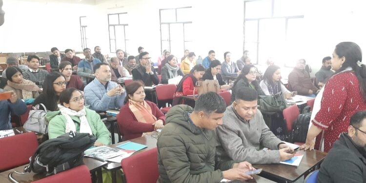 गुरुवार को डोईवाला महाविद्यालय में वाधवानी फाउंडेशन के सहयोग से जीवन कौशल एम्प्लॉयबिलिटी स्किल्स विषय पर आयोजित फैकल्टी ओरिएंटेशन प्रोग्राम के प्रथम दिन उच्च शिक्षा संयुक्त निदेशक प्रो एनएस उन्याल ने प्रतिभागियों को संबोधित किया।