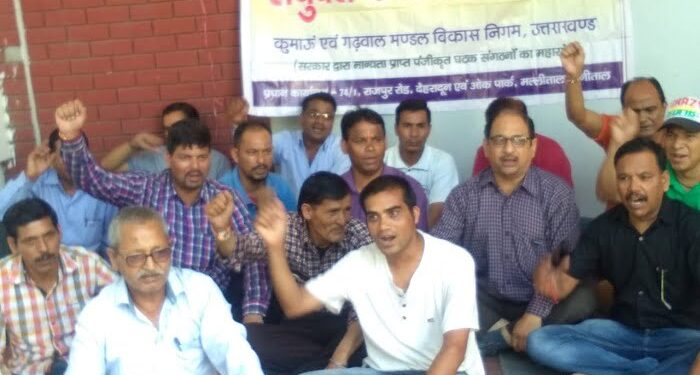 देहरादून। निजीकरण के खिलाफ और विनियमितीकरण की मांग को लेकर जीएमवीएन मुख्यालय में दो दिवसीय धरना प्रारंभं हुआ। जीएमवीएन एव ंकेएमवीएन संयुक्त कर्मचारी महासंघ दो दिवसीय धरना आज से प्रारंभ हुआ, जो 28 अगस्त तक चलेगा। इस दौरान चार सूत्रीय मांग पत्र रखा गया।