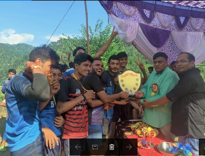 प्रतियोगिता में कुल दस टीमों ने हिस्सा लिया है। रविवार को बतौर मुख्य अतिथि ब्लाक प्रमुख जखोली प्रदीप थपलियाल ने विजेता व उप विजेता टीमों के खिलाड़ियों को स्मृति चिह्न भेंट करते हुए कहा कि खेलों से जहां हमारा शारीरिक विकास होता है वहीं युवा पीढ़ी को खेल प्रतियोगिताओं से जीवन में अनुशासन की भावना का विकास भी होता है।