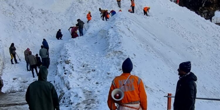 रुद्रप्रयाग – श्री केदारनाथ धाम मे 3 दिनों से हुई भारी बर्फबारी के कारण पैदल रास्ते पर कुबेर ग्लेशियर एंव भैरव ग्लेशीयर टूटने से मार्ग बंद हो गया है.इन स्थानों पर बर्फ हटाने के लिए मजदूर युद्ध स्तर पर कार्य मे लगे है.सुरक्षा की दृष्टि से यहाँ पर SDRF व DDRF के जवान भी तैनात किये गये है.आज धाम मे सुबह से ही तेज धूप खिली है,जिससे हैली सेवाए शुरू हो चुकी है.