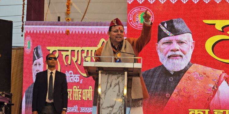 मुख्यमंत्री ने मातृशक्ति को विशेष रूप से सम्बोधित करते हुए कहा कि उत्तराखंड की संस्कृति की असली वाहक आप हैं। आपके संस्कार, आपकी मेहनत और आपका त्याग ही हमारे समाज की सबसे बड़ी ताकत है। इसलिए महिला सशक्तिकरण हमारे लिए केवल नारा नहीं, बल्कि संकल्प है। उन्होंने कहा कि जो लोग दशकों तक सिर्फ वादे करते रहे, वे आज हमारी उपलब्धियों से घबराए हुए हैं, लेकिन मैं, आज इस मंच के माध्यम से ये स्पष्ट कर देना चाहता हूं कि “ये देवभूमि है, यहां विकास भी होगा, हमारी संस्कृति भी बचेगी और राष्ट्रविरोधी लोगों को यहां से अंतोतगत्वा जाना ही पड़ेगा”। हमारा लक्ष्य उत्तराखंड को देश का सर्वश्रेष्ठ राज्य बनाना है। और ये लक्ष्य कोई नारा नहीं, बल्कि हमारा “विकल्प रहित संकल्प” है और मुझे पूर्ण विश्वास है कि हमारे इस संकल्प को सिद्धि तक पहुंचाने के लिए आप सभी इसी प्रकार हमारी सरकार का सहयोग करते रहेंगे।