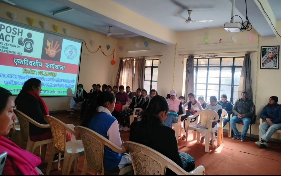राजकीय स्नातकोत्तर महाविद्यालय जोशीमठ के एडुसैट सभागार में महाविद्यालय की आंतरिक परिवाद समिति (आई. सी.सी.) और आंतरिक गुणवत्ता सुनिश्चयन प्रकोष्ठ के तत्वावधान में ‘पोश एक्ट’ के तहत कार्यस्थल को महिला उत्पीड़न से सुरक्षित बनाने तथा नियोक्ता की जिम्मेदारियां’ — विषय पर एक सफल कार्यशाला का आयोजन