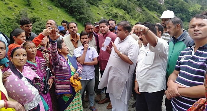 फोटो-विधायक महेन्द्र भटट से वार्ता करते लामबगड के ग्रामीण ।