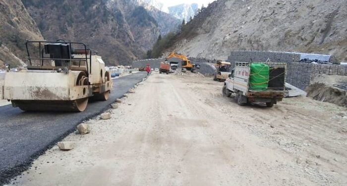 फोटो- लामबगड में नए एलाइनमेंट सडक का डामरीकरण कार्य।