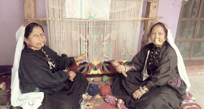फोटो–राॅच पर ऊनी वस्त्रों को तैयार करती जनजाति की महिलाएं ।