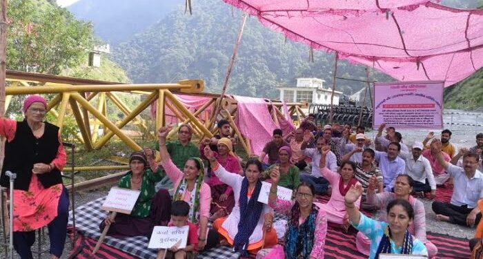 लोहारी। लगातार 108 वें दिन भी लखवाड-ब्यासी बांध से पूर्ण रुप से प्रभावित एकमात्र राजस्व गांव लोहारी का धरना प्रदर्शन जारी रहा।