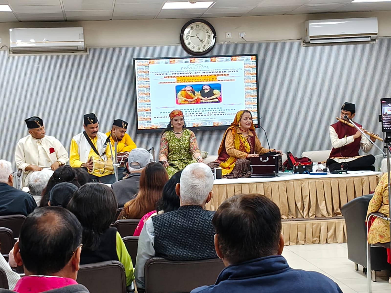 देहरादून, 3 नवम्बर , 2025। दून पुस्तकालय एवं शोध केन्द्र की ओर से उत्तराखण्ड राज्य स्थापना दिवस पर रजत जयंती समारोह के अन्तर्गत आज दून पुस्तकालय एवं शोध केन्द्र परिसर में उत्तराखण्ड के लोक संगीत व कला से जुड़े विविध कार्यक्रम आयोजित किये गये। इन सभी आयोजनों में बड़ी संख्या में लोग उपस्थित रहे।