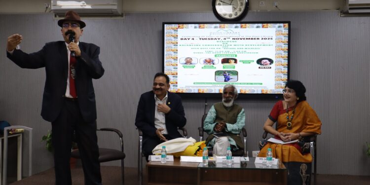 प्रातःकालीन सत्र में आज विकास और पर्यावरण में संतुलन पर चर्चा का विशेष कार्यक्रम हुआ। इसमें प्रश्नोत्तरी, चर्चा और सवाल-जबाब के माध्यम से उत्तराखण्ड की प्रकृति, वन और वन्य जीवों के सन्दर्भ में महत्वपूर्ण बातचीत हुई। दून पुस्तकालय एवं शोध केन्द्र के मुख्य सभागार में इस विषय पर प्रतिभागी वक्ताओं में हिमालयन विश्वविद्यालय के कुलपति डॉ. राजेन्द्र डोभाल, श्री विजय जड़धारी, सामाजिक कार्यकर्ता और बीज बचाओ आन्दोलन के प्रणेता तथा लेखिका श्रीमती साधना जयराज शामिल रहीं। चर्चा का संचालन श्री जयराज पूर्व प्रमुख वन संरक्षक, श्री जयराज ने किया। इसमें वन्य प्रश्नोत्तरी में 10 स्कूलों से आये बच्चों ने प्रतिभाग किया।
