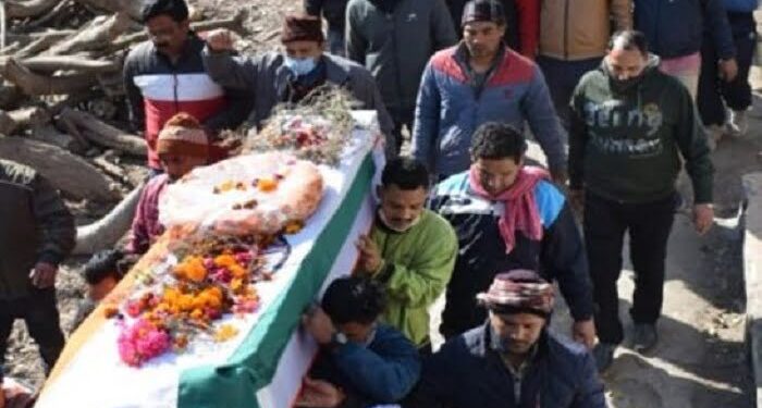 हल्द्वानी। मणिपुर इम्फाल के सैलून में आतंकवादी हमले में असम राइफल के हवलदार रणवीर सिंह रावत शहीद हो गए। शहीद का पार्थिव शरीर हल्द्वानी स्थित उनके आवास चांदनी चौक बल्यूटिया पहुंचा। शहीद का पार्थिव शरीर देख परिजनों में कोहराम मच गया। शहीद के अंतिम दर्शन के बाद रानीबाग स्थित चित्रशिला घाट के लिए शव यात्रा निकली। शवयात्रा में घर से चित्रशिला घाट तक शहीद रणवीर सिंह अमर रहे के नारे गूंजते रहे। चित्रशिला घाट पर सैन्य सम्मान के साथ शहीद की अंत्येष्टि की गई। शवयात्रा में शामिल लोगों ने उन्हें अश्रुपूर्ण श्रद्धांजलि दी।