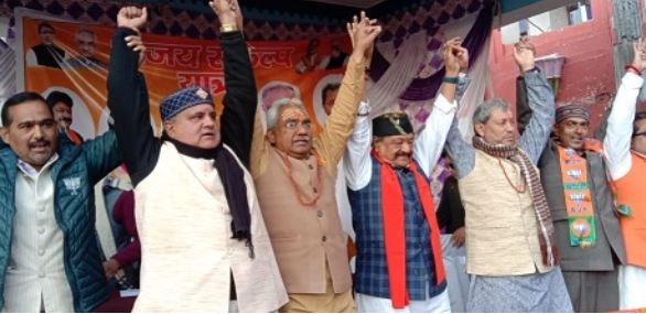 इस अवसर पर पूर्व मुख्यमंत्री एवं गढ़वाल सांसद तीरथ सिंह रावत ने कहा कि जिस प्रकार कोबिट कल में देश एवं प्रदेश की स्वास्थ्य सेवाओं में सुधार हुआ है सब को मुफ्त वैक्सीन एवं गरीब कल्याण योजना के तहत मुफ्त राशन का वितरण किया जा रहा है यह हम सब के लिए गर्व की बात है वही बद्रीनाथ के विधायक महेंद्र भट्ट ने कहा कि जिस प्रकार का चौमुखी विकास हमारी राज्य सरकार कर रही है न भूतो न भविष्यति। इस अवसर पर भारतीय जनता पार्टी के जिला अध्यक्ष रघुवीर सिंह बिष्ट ने सभी से आग्रह पूर्वक निवेदन किया के पुनः 2022 के विधानसभा चुनाव में भारतीय जनता पार्टी को अपना आशीर्वाद देंगे। इस अवसर पर जिला प्रभारी विजय कपरुवाण, प्रदेश प्रवक्ता विनोद सुयाल, पूर्व राज्य मंत्री वीरेंद्र सिंह बिष्टए विजय संकल्प यात्रा के जिला संयोजक सतीश लखेड़ा, सह संयोजक हरक सिंह नेगी, जिला सहकारी बैंक अध्यक्ष गजेंद्र रावत, पूर्व मंदिर समिति अध्यक्ष अनुसूया प्रसाद भट्ट, पूर्व नगरपालिका अध्यक्ष प्रेम बल्लभ भट्ट, नगर मंडल अध्यक्ष विनोद कनवासी जिला पंचायत सदस्य विक्रम सिंह बर्तवाल, जिला पंचायत सदस्य योगेंद्र सेमवाल, महिला मोर्चा अध्यक्ष चंद्रकला तिवारी, कला पाठक, नंदी राणा, रोहिणी रावत, विजया रावत, रमेश बन्डवाल, लक्ष्मी प्रसाद पंत, वत्सला सती, जितेंद्र सती, वीरेंद्र पाल भंडारी, धूम सिंह नेगी पूर्व राज्य मंत्री रिपुदमन सिंह रावत, दीपक भट्ट, कैप्टन दर्शन सिंह, कैप्टन हरि सिंह, भगवती प्रसाद नंबूरी, सुभाष डिमरी, किशोर पंवार, जगदीश सती, लक्ष्मण फरकिया, ऋषि प्रसाद सती, माधव प्रसाद सेमवाल राकेश भण्डारी आदि वक्ताओं ने अपनी बात रखी कार्यक्रम का संचालन जिला महामंत्री नवल भट्ट ने किया।