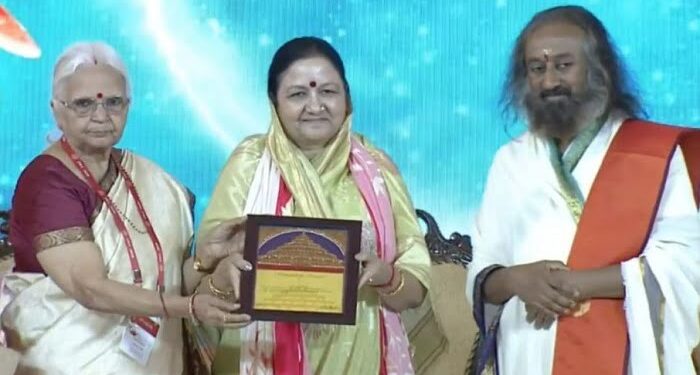 आर्ट ऑफ लिविंग के तत्वावधान में बेंगलुरु में आयोजित अंतर्राष्ट्रीय महिला सम्मेलन के प्रथम दिन विशालक्षी अवार्ड.2020 से सम्मानित समाज सेवी माताश्री मंगला जी ने आर्ट ऑफ लिविंग के संस्थापक श्री श्री रवि शंकर एवं इस सम्मेलन में उपस्थिति प्रबुद्धजनों का अभिवादन करते हुए कहा कि इक्कीसवीं सदी में महिलाओं की स्थिति में बदलाव की बयार चल पड़ी है। दुनिया भर में नारी को समानता का अधिकार दिया गया है। आज इसी का परिणाम है कि पूरी दुनिया से इस मंच पर महिला शक्ति की सफल विचारधारा एक साथ मंच पर उपस्थिति थी। मैं उन सभी महिला प्रतिभागियों का इस मंच पर आने के लिए अभिवादन करती हूँ। साथ ही इस भव्य आयोजन के लिए आदरणीय श्री श्री रवि शंकर जी को बहुत.बहुत बधाई देती हूँ।